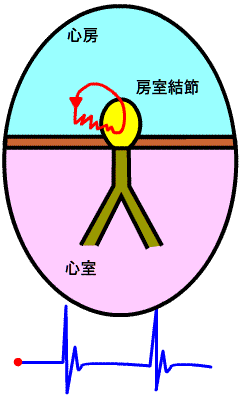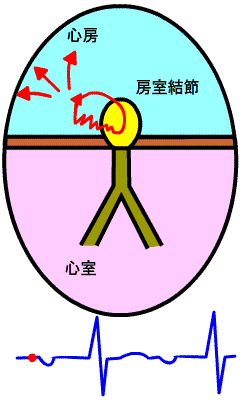 左がslowを順伝導し,fastを逆伝導するcommon type. 心房と心室がほぼ同時に興奮する.