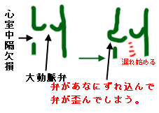 大動脈弁の真下に穴があいていると、大動脈弁が穴にずり落ちてきて、弁がゆがんでしまいます。