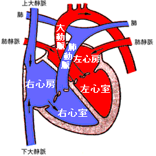 まずは、病気のない心臓です。左右に心房という部屋と心室という部屋があります。 体で使って黒くなった血液は、上大静脈と下大静脈という血管を通ってまず右心房という部屋に入ります。ここから右心室に入って、肺動脈に送り出されます。 肺を通った血液は、酸素をもらって真っ赤に変わります。 赤い血と黒い血は、壁で仕切られていて、混じらないようになっています。そして、心房と心室、心室と動脈の間には、血が逆流しないように、それぞれ弁がついています。 心臓の大きさは、大体その人の握りこぶしぐらいと言われています。赤ちゃんの心臓がどんなに小さいものか想像してみて下さい。 赤ちゃんの生まれながらの心臓病というのは、この小さな心臓の壁に 1. あながあいていたり、 2. 通り道に狭いところがあったり、 3. 部屋を仕切る壁が全然なかったり、 4. 四つある部屋が二つしかなかったり、 5. 心臓に出入りする血管が間違った場所につながっていたり、 といったことで起こります。 心臓病というと、顔色が悪くてチアノ−ゼがあって、体も細くて小さくて、という印象が一般的にはあると思います。たとえば心室が一つしかなかったりすると、こういう状態になります。しかし、心室が一つしかなく、チアノーゼがきつい人でも、バランスがとれていれば元気に学校に行って勉強に励んでいる子供もたくさんいます。 そして心臓病の中には、こんな症状のまるでない、まったく健康、元気そのもので育っていく子供もたくさんいるのです。そういう心臓病の方が圧倒的に数は多いのですが、それでも手術や治療が必要なこともたくさんあります。 それはなぜなのか、それぞれの病気について説明する前に、まず子供の心臓病についての一般的なところからお話しします。 |